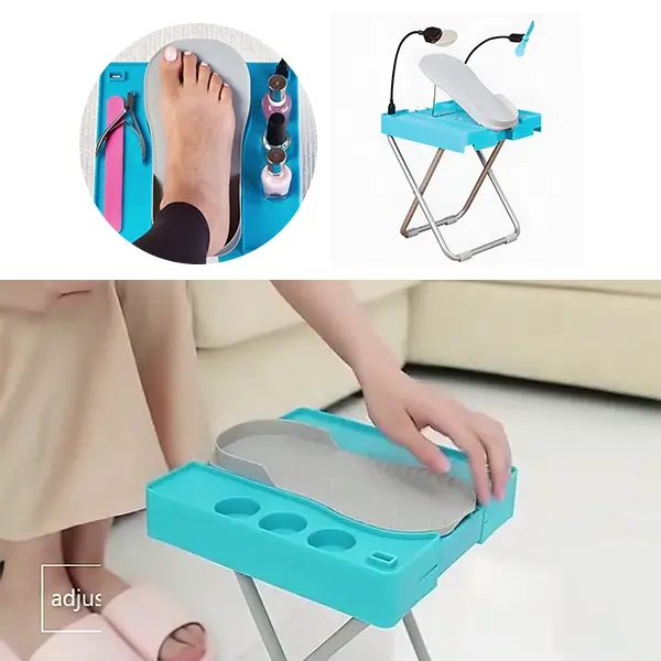 - Nincs többé hajlongás vagy nyújtózkodás – Az állítható lábtartó tökéletes pozícióban tartja a lábakat a körömfestéshez.