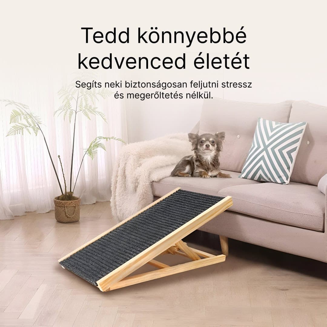 - Csúszásmentes Felület: Nagyobb biztonságot nyújt az állatoknak a feljutás során.