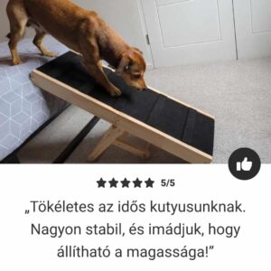 Ez a rámpa tökéletes volt az idős kutyánk számára. Olyan masszív, és különböző magasságokra állíthatjuk be.