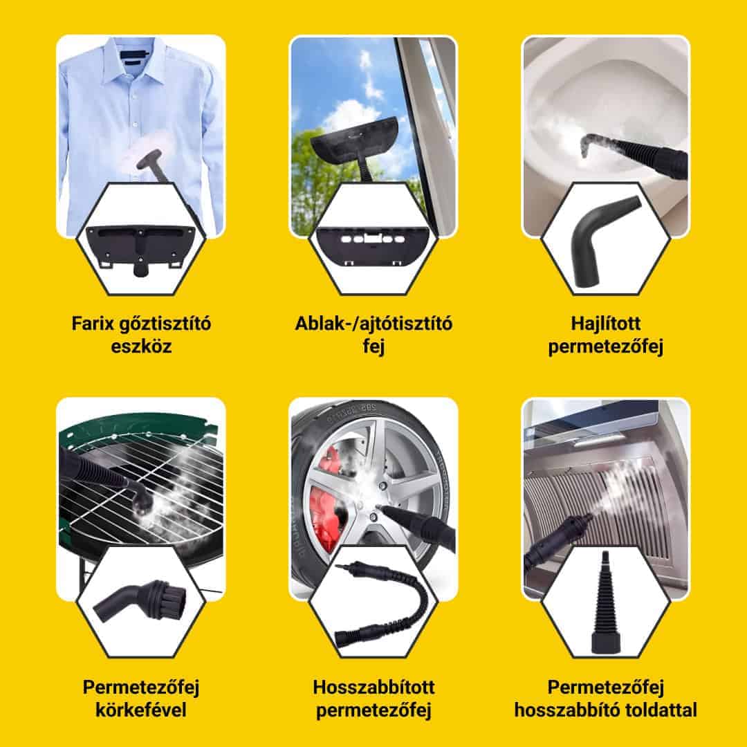 „Imádom, hogy nincs szükség tisztítószerekre! A gőz mindent elvégez. Rengeteg tartozék, igazán praktikus.”